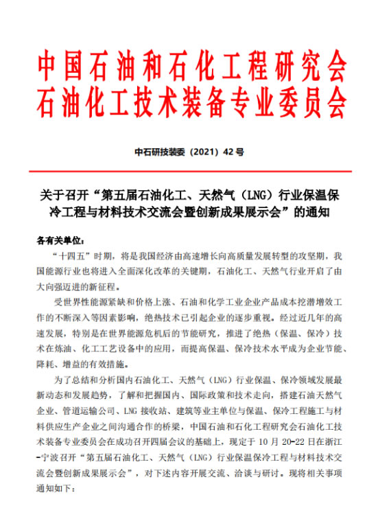 大會將邀請中石油、中石化、中海油、中化集團(tuán)、神華集團(tuán)、國家管網(wǎng)集團(tuán)等單位相關(guān)領(lǐng)導(dǎo)出席大會并做重點(diǎn)發(fā)言,作為參會代表,科好特公司將與來自國內(nèi)外保溫保冷材料上下游一百多位杰出的企業(yè)家、學(xué)術(shù)界翹楚等,就石化、天然氣保溫、保冷、腐蝕與防護(hù)等問題進(jìn)行交流,共同展望新趨勢,探索新機(jī)遇。