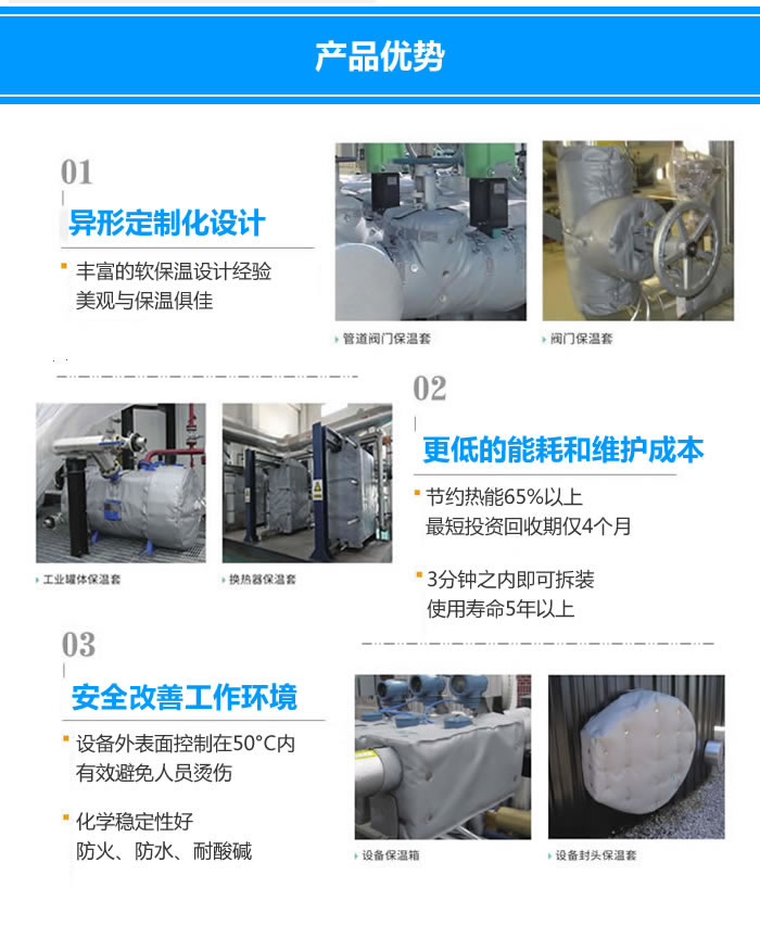 1、節(jié)約電能:經(jīng)一線測試本產(chǎn)品的平均節(jié)電率都在20%-35%。其經(jīng)濟效益顯著,能為各企業(yè)減少不必要的開支。直接為企業(yè)增效,降低經(jīng)營成本,提高競爭力。據(jù)測算,僅節(jié)電一項,約不到一年就可收回保溫套的成本。