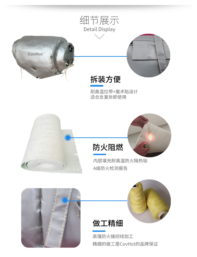 接下來為大家介紹一款非常適合Y型過濾器等異形需頻繁檢修的設(shè)備使用的可拆卸保溫套。可拆卸保溫套,顧名思義,即可以重復(fù)拆卸使用的設(shè)備保溫套,不僅保溫效果顯著,而且非常方便拆裝,無(wú)需專業(yè)人員即可在1分鐘左右完成拆裝,能夠?yàn)檫^濾器的檢修降低時(shí)間投入,從而避免企業(yè)由于檢修緣故反復(fù)做保溫這一難題。