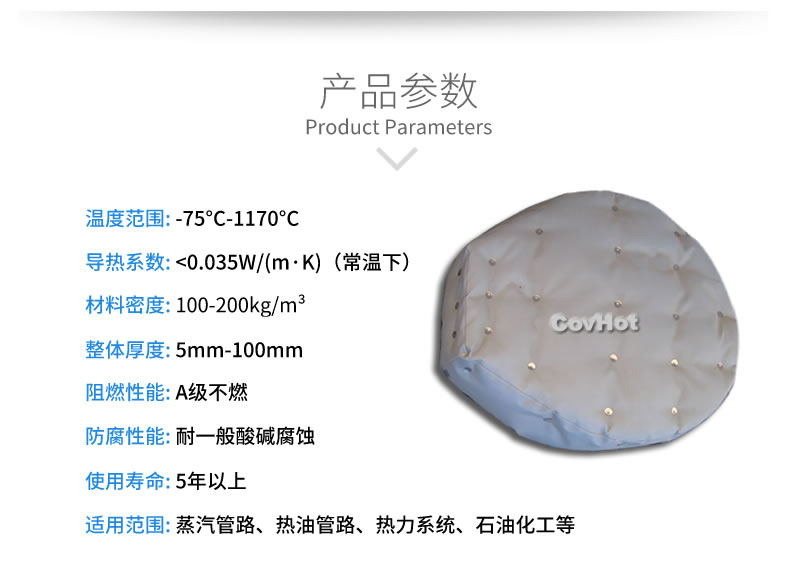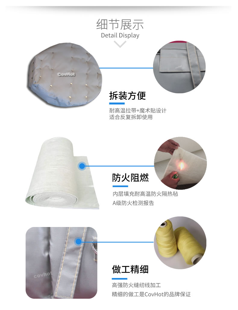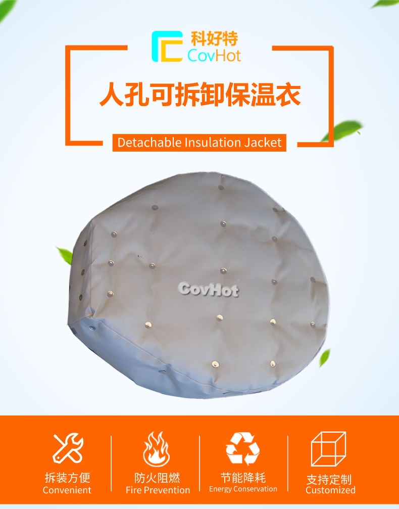 柔性可拆卸人孔保溫套采用柔軟的保溫材料設(shè)計,與人孔等設(shè)備緊密結(jié)合,根據(jù)人孔的形狀量身定制,產(chǎn)品外觀整潔,不含石棉及其他有害物質(zhì),幫助工廠改善工作熱環(huán)境,可以有效防止人員燙傷。