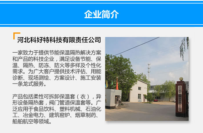 COPYRIGHT © 2012-2024 河北科好特科技有限責(zé)任公司 注冊(cè)商標(biāo)"COVHOT?" -柔性可拆卸隔熱、保溫、防凍、防火解決方案服務(wù)商 All rights reserved.